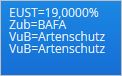 Nach Ermittlung einer Codenummer erfolgt der Hinweis auf eine Verbrauchsteuer sowohl in der Spalte 'Kennz' des Bezeichnungsfeldes:
